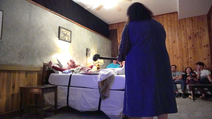 This frightening story, based on the novel by Stephen King, was performed in an immersive fashion that placed the audience squarely inside the cabin of Annie Wilkes, merely inches from the performing actors.